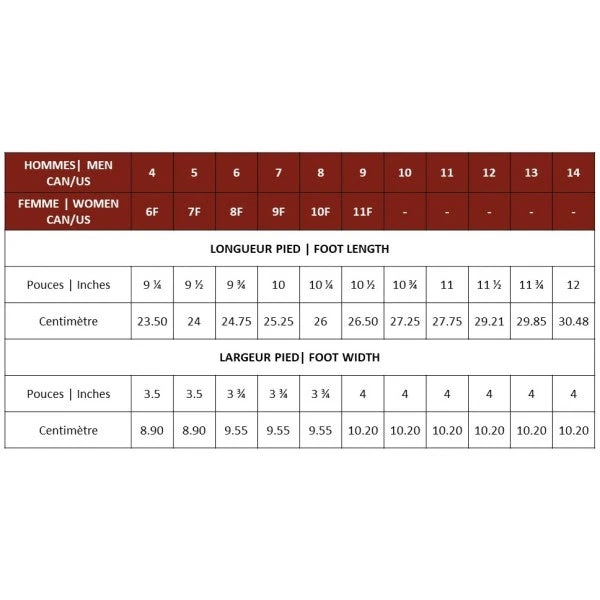 Veuillez noter que les tailles affichées sont pour hommes. Consultez notre charte de grandeur pour les équivalents des femmes.