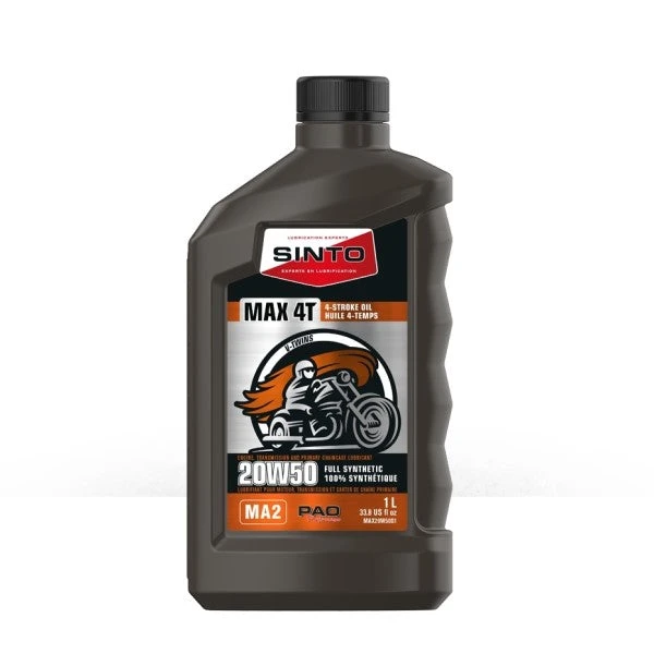La MAX4 SAE 20W50 de SINTO est une huile synthétique développée pour répondre aux exigences rigoureuses de lubrification des motos avec moteur en V de forte cylindrée. Elle convient également aux moteurs de bateaux (inboard/intérieur) et aux autres moteurs 4-temps fonctionnant dans des conditions extrêmes.