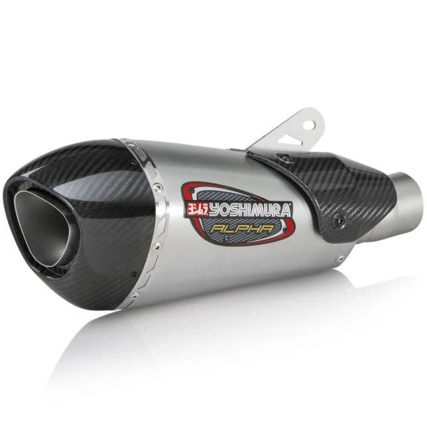 - Le silencieux est doté d’un embout en fibre de carbone de grand diamètre et d’une sortie de silencieux intégrée, formée par emboutissage.